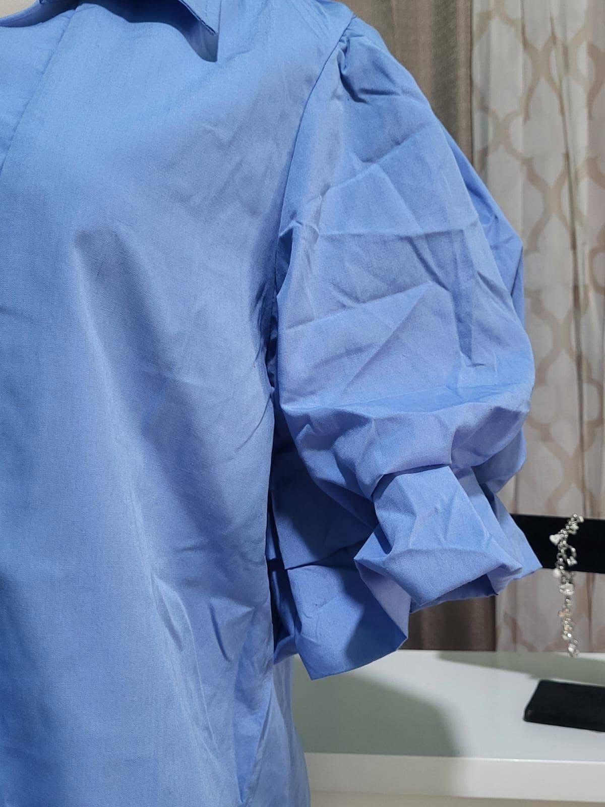 Añade un toque de volumen y frescura a tu clóset con esta blusa Kaktus para dama. Con un diseño de cuello en V y llamativas mangas abullonadas con elástico, esta prenda en color azul cielo es la combinación perfecta entre comodidad y estilo moderno.