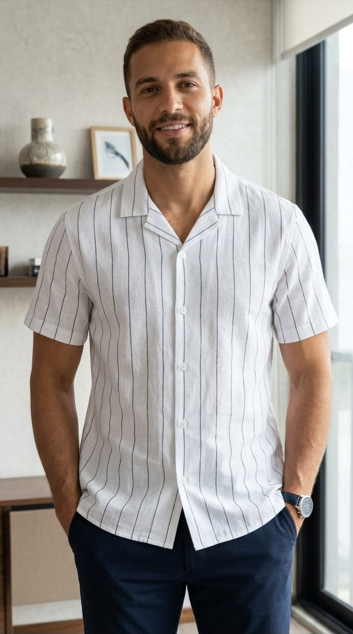 Camisa de Botones Kenneth Cole a Rayas para Hombre | pensada para el hombre moderno que busca elegancia y comodidad. Diseño limpio y atemporal con cierre de botones frontales, cuello estructurado : combina perfecto con traje, blazer o pantalón de vestir para oficina, eventos y ocasiones formales. Corte slim fit que estiliza la figura sin sacrificar movilidad; tejido suave y transpirable que facilita el uso todo el día y ofrece una apariencia impecable. Costuras reforzadas y acabado de calidad característicos de la marca. Ideal como pieza principal en looks de trabajo, entrevistas, bodas y eventos.