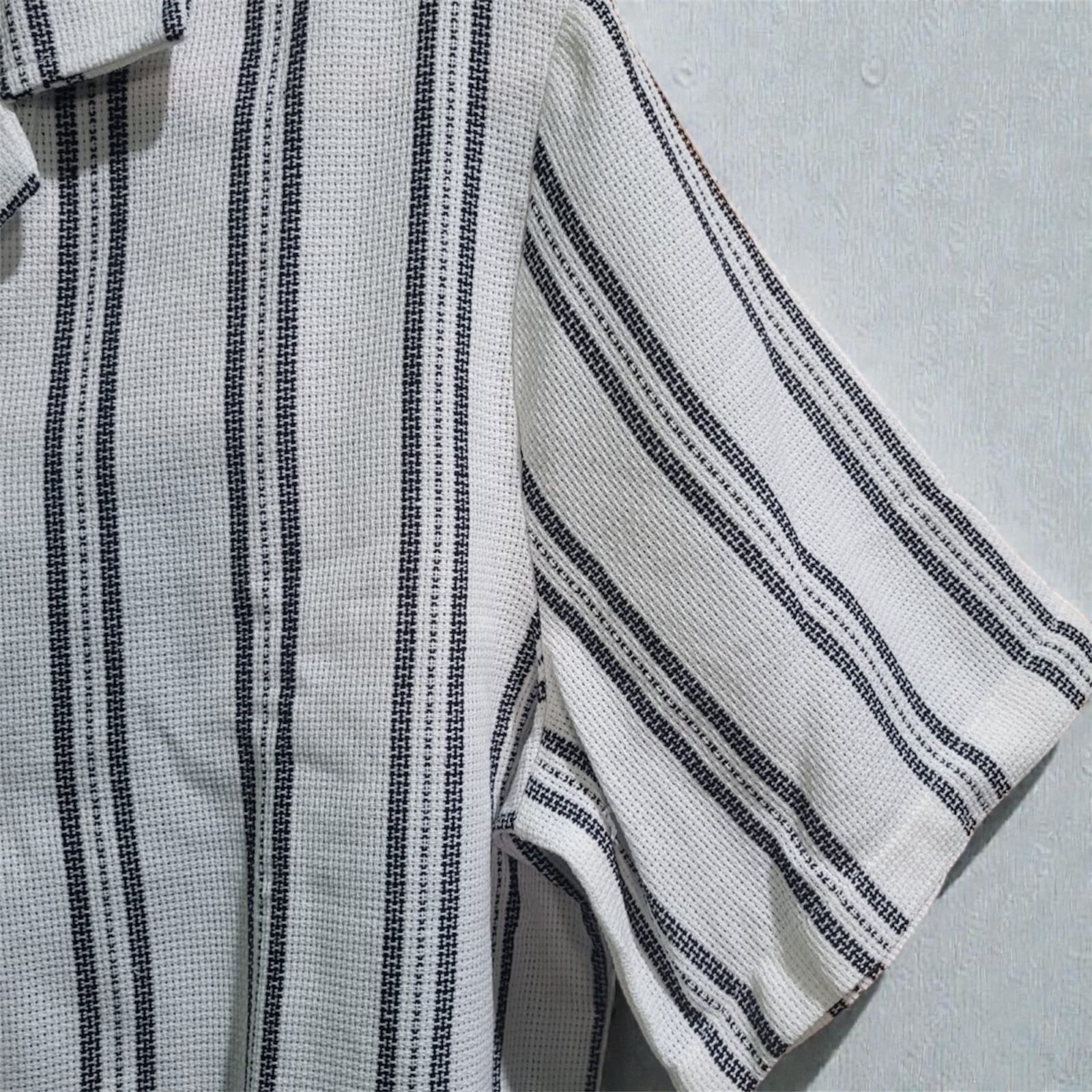 Camisa de vestir Kenneth Cole a rayas con botones frontales y corte moderno —estilo cubano- elegancia y comodidad para oficina y eventos formales e informales