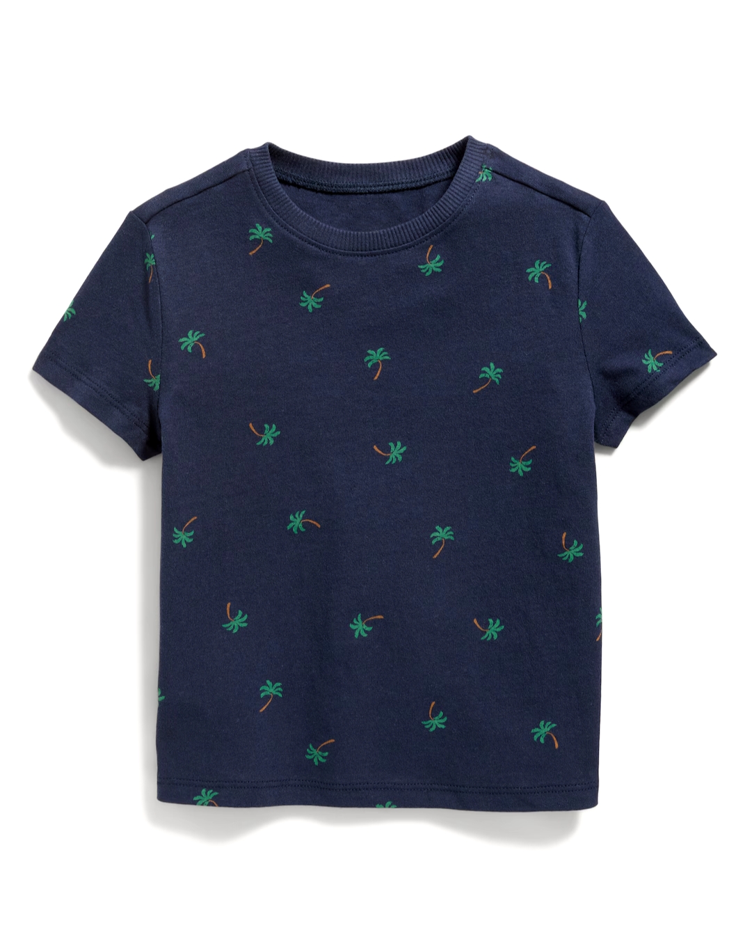 Camisa para niño Old Navy color azul marino con divertidas palmeras estampadas. Suave, fresca y perfecta para el día a día o paseos al aire libre.