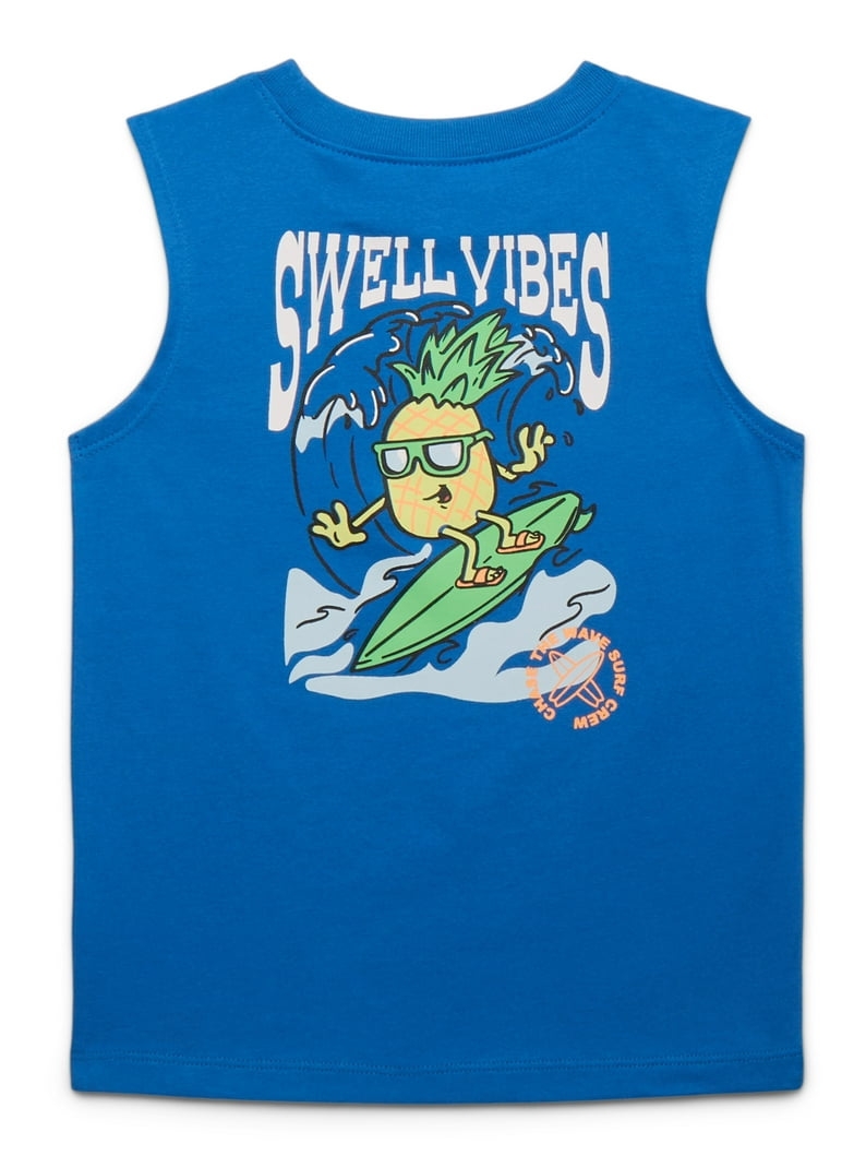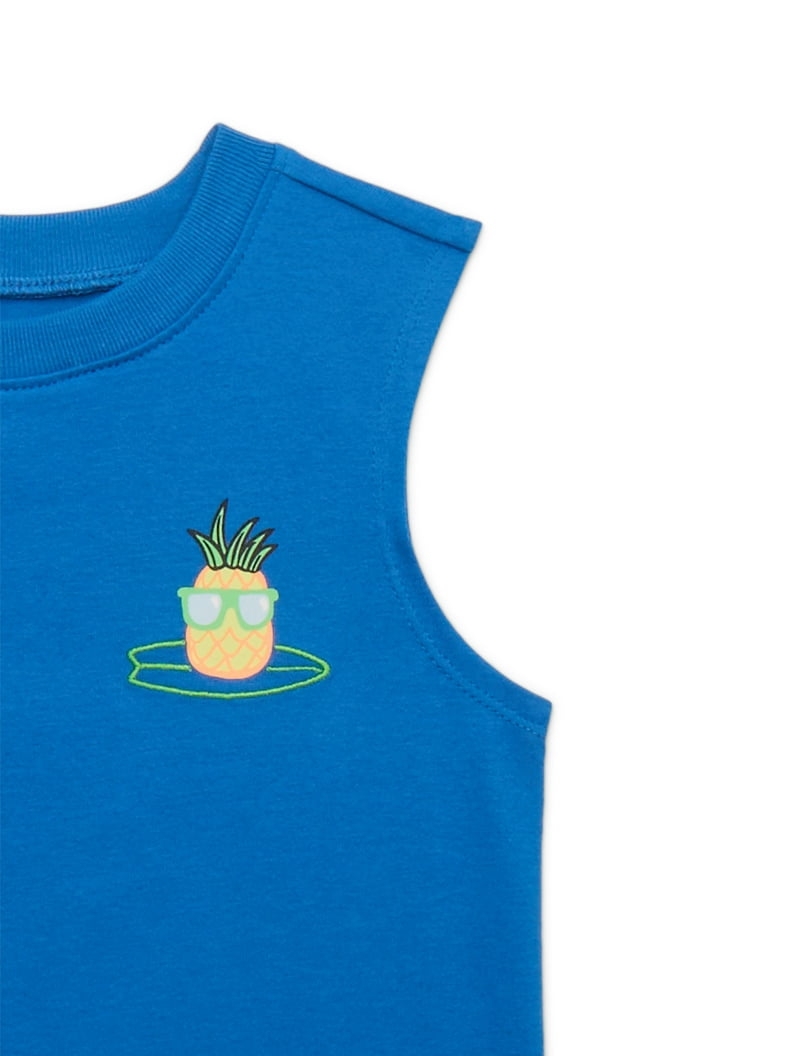 Camisa sin mangas Garanimals para niño, color azul vibrante con divertido diseño de piña con gafas, ideal para días soleados y outfits casuales.