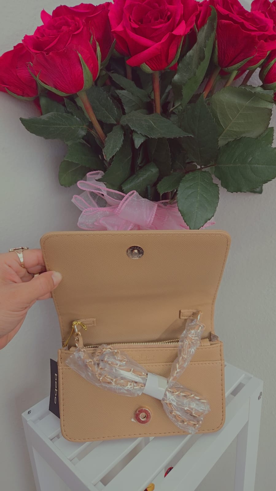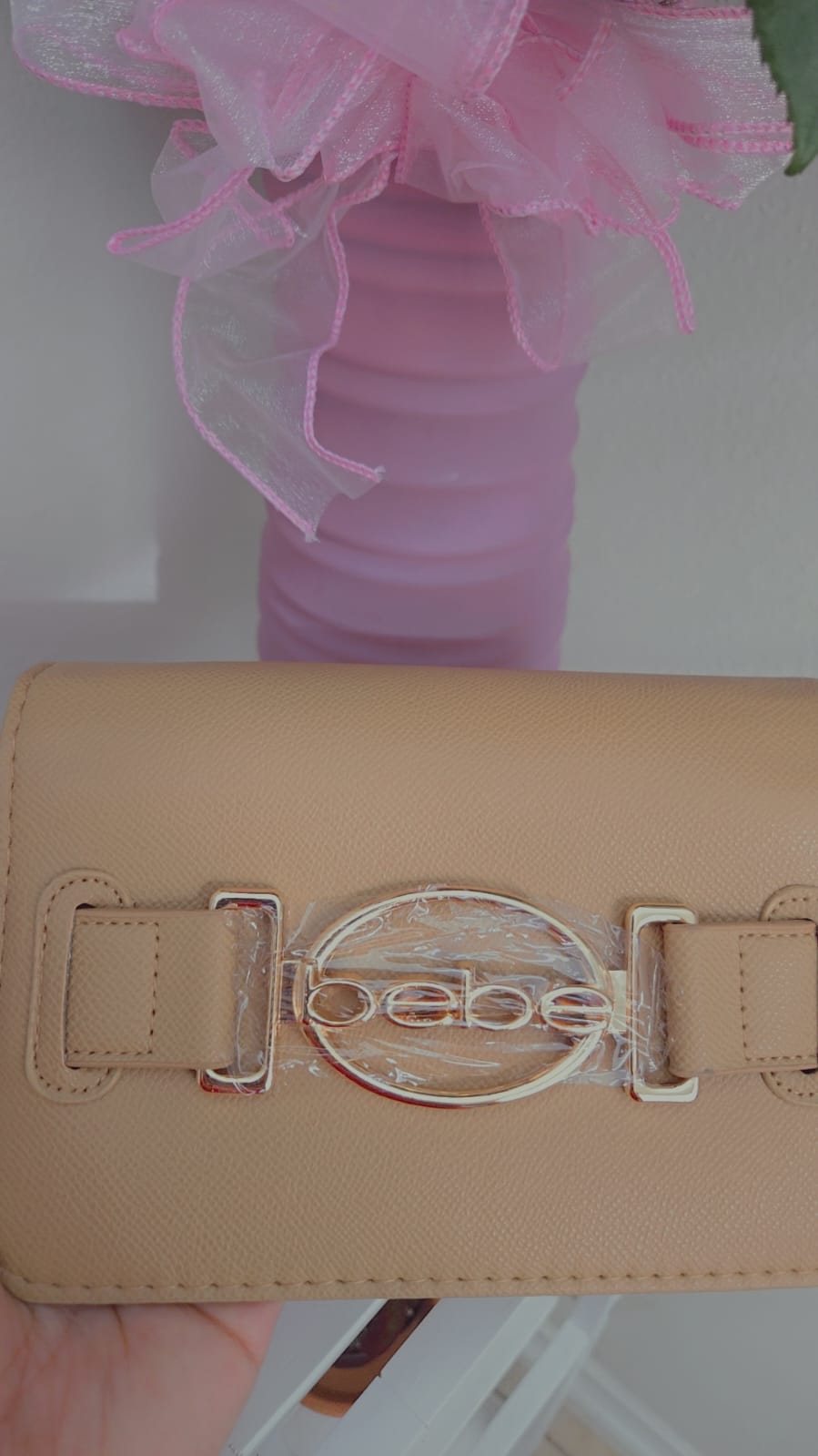 La cartera BEBE beige es sinónimo de elegancia atemporal, perfecta para realzar tu estilo con un toque chic.