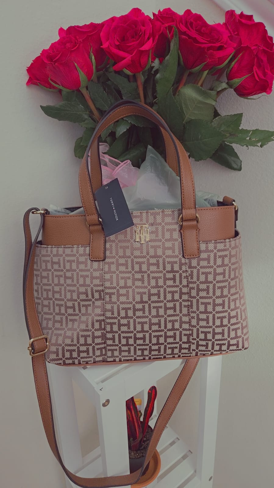 La cartera Tommy Hilfiger monogram café es el equilibrio perfecto entre elegancia y funcionalidad. Diseñada con el clásico patrón entrelazado de la marca y acabados en tono café, este bolso refleja el estilo icónico y sofisticado de Tommy Hilfiger.