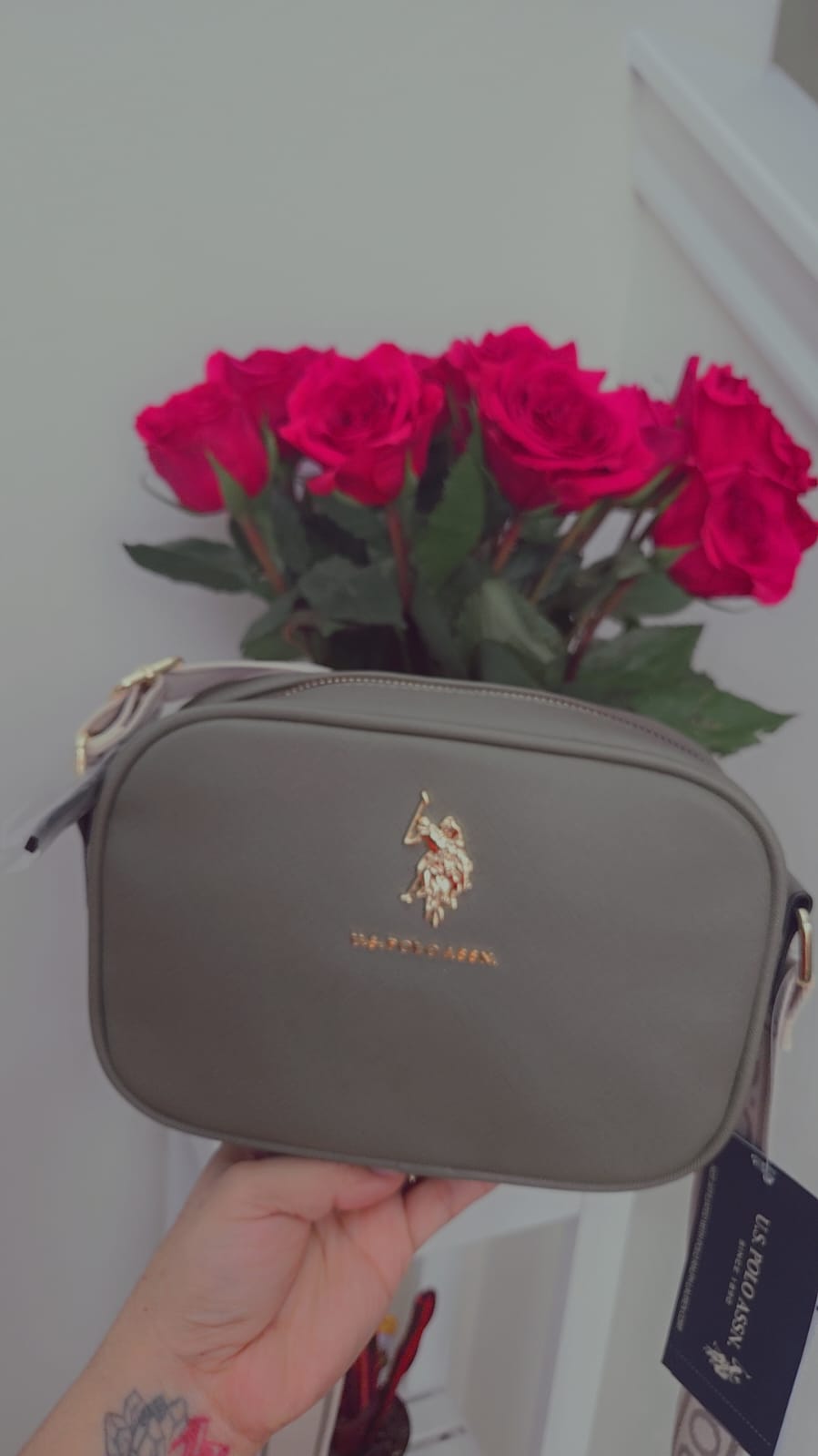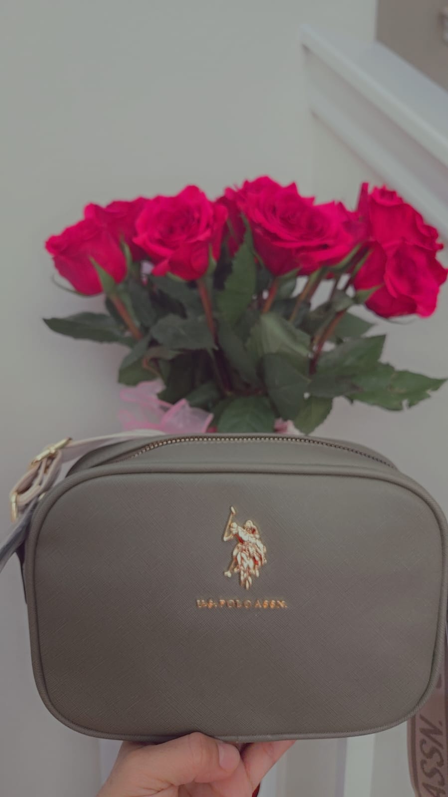 Cartera U.S. Polo Assn. color verde olivo con diseño crossbody y logotipo dorado. Un accesorio elegante, moderno y funcional, ideal para cualquier ocasión.