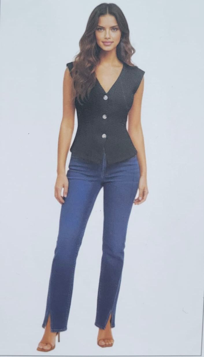 Úsalo como pieza única (tipo top) con pantalones de vestir de tiro alto para un look ultra moderno, o sobre una blusa de seda para un estilo de oficina clásico y sofisticado.