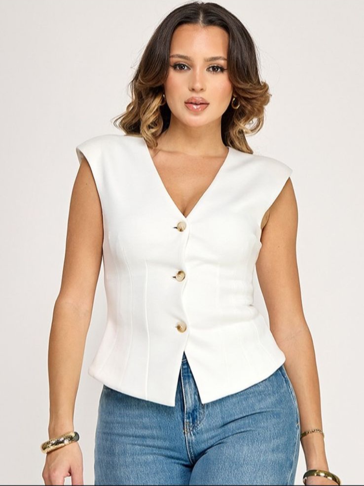 Define tu silueta con el elegante chaleco sastrero de Milk & Honey. Con un diseño estructurado de pinzas verticales y botones frontales, esta prenda es el equilibrio perfecto entre la moda formal y la tendencia contemporánea. Disponible en colores básicos: Blanco, Beige y Negro, ideales para crear looks de capas impecables.