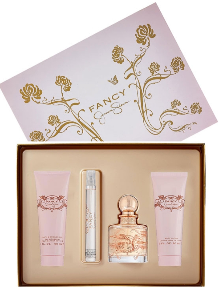 El Set Fancy de Jessica Simpson incluye perfume 100ml, crema perfumada, gel de baño y mini perfume 10ml. Una fragancia dulce, femenina y moderna, ideal para mujeres elegantes y románticas.