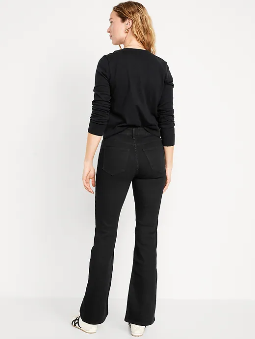 Flare jeans Old Navy con corte acampanado moderno, disponibles en colores azul medio y negro. Diseño cómodo, favorecedor y versátil para todo tipo de cuerpo.