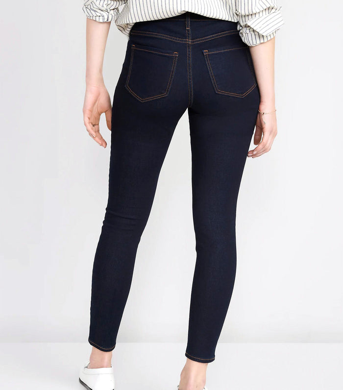 Pantalón de mezclilla ajustado Old Navy con tiro medio y corte super skinny. Denim elástico que moldea y realza tu figura