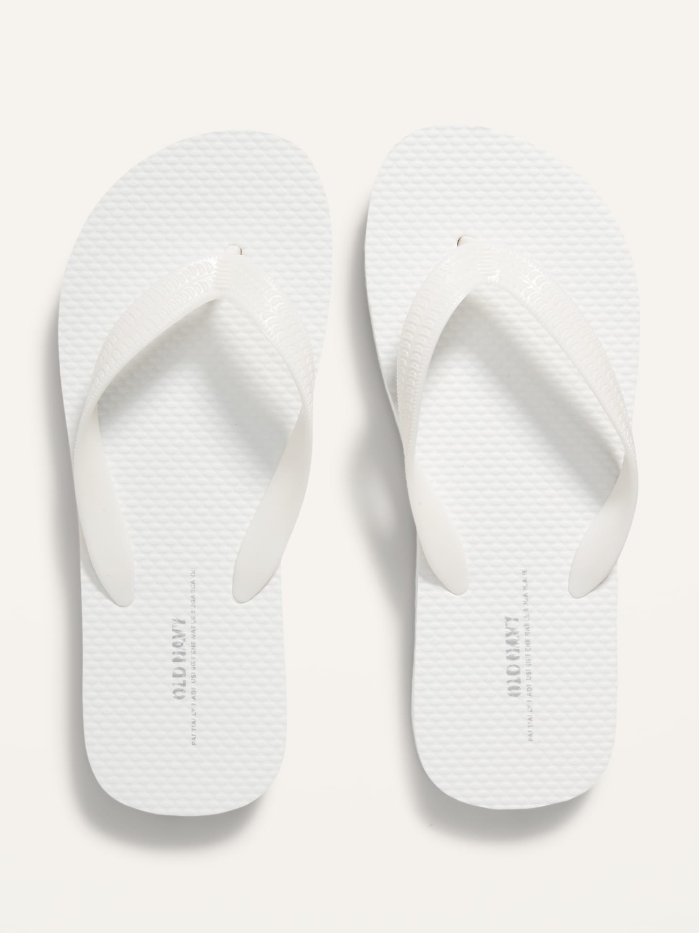 Sandalias tipo flip flop Old Navy para niño en color blanco, ligeras y cómodas, ideales para días de playa o uso diario.