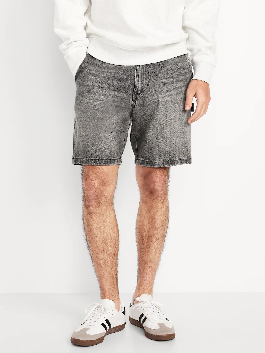 Short jeans Old Navy para hombre en color gris deslavado, con corte baggy y diseño casual. Ideal para un look moderno, relajado y con estilo urbano.