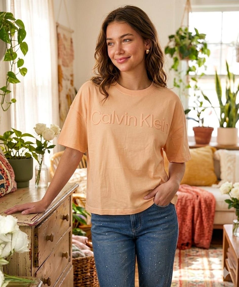 Eleva tu estilo casual con este top oversize de Calvin Klein en un llamativo color naranja. Diseñado para ofrecer máxima comodidad sin perder la sofisticación, cuenta con un corte holgado moderno y el emblemático logo de la marca bordado. Ideal para combinar con jeans o leggings en cualquier temporada.