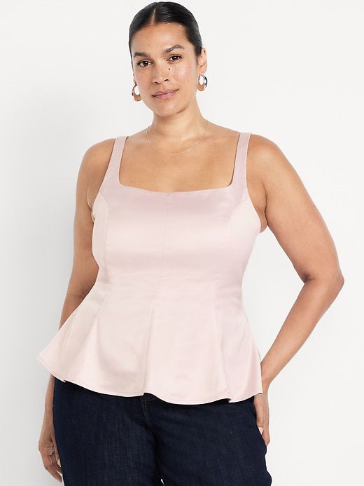 Añade una pieza clave a tu guardarropa con este top diseñado para resaltar tu figura con delicadeza. Su acabado satinado aporta un brillo sutil y lujoso, mientras que el diseño peplum crea una silueta de reloj de arena instantánea.