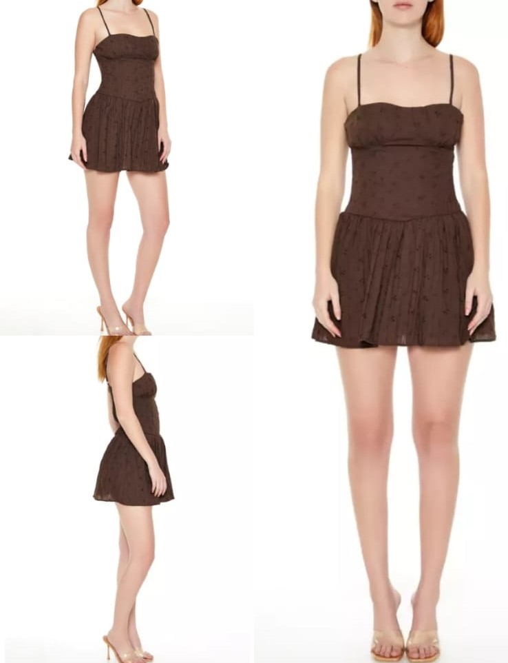 Resalta tu estilo con este vestido corto café Forever 21, una prenda versátil que combina elegancia y comodidad. Su diseño incluye tirantes delgados, escote recto y una falda con vuelo, perfecta para brindar movimiento y una silueta favorecedora.